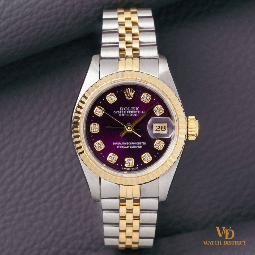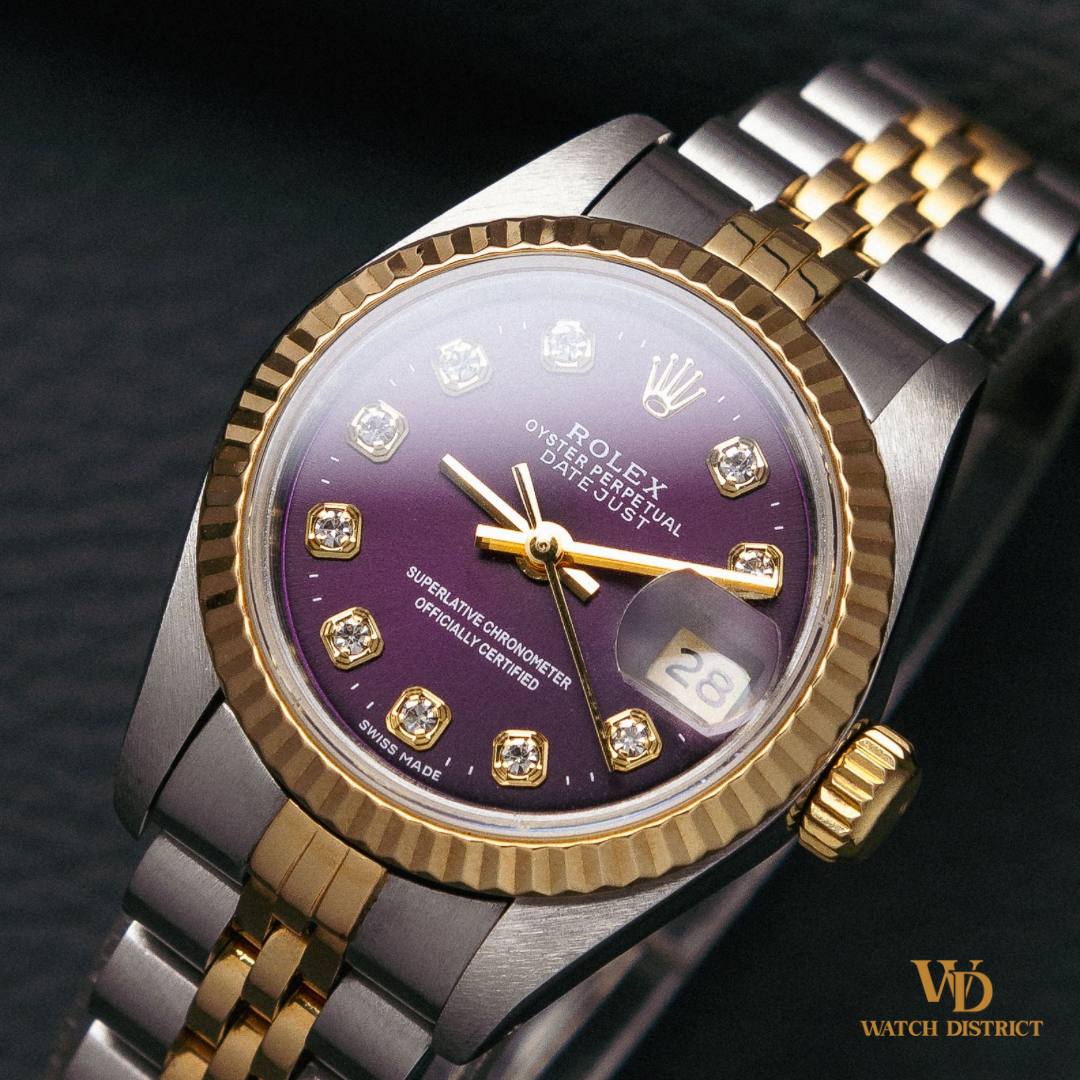 Watch Ref.: 26mm Rolex Custom Purple 10-PT Diamond Dial Half-Gold Lady-Datejust 69173