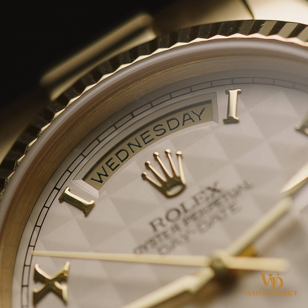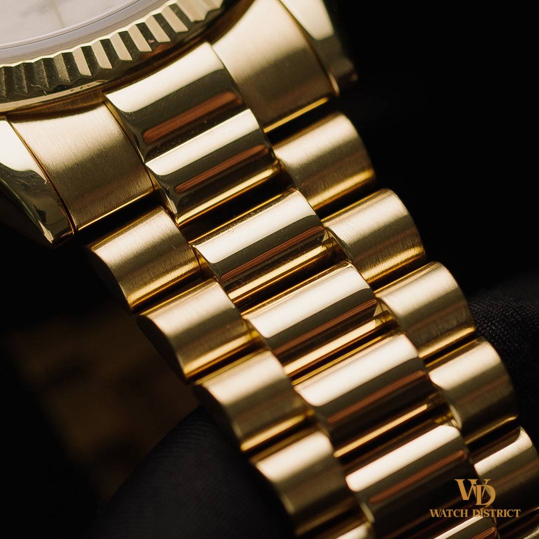Indulge in the ultimate expression of luxury with the Rolex 118238, a stunning blend of 18k yellow gold featuring an exquisite ivory Roman numeral pyramid dial. This prestigious timepiece radiates elegance and sophistication, embodying the unmatched craftsmanship that only Rolex can deliver.