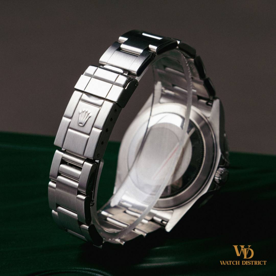 The overall condition of this 16710 is mint, a true testament to how carefully it has been maintained. The case is sharp with minimal signs of wear, and the bracelet retains its original tightness, showing very little stretch. This Rolex has been worn minimally with utmost care, preserving its pristine aesthetic and making it an excellent choice for both collectors and enthusiasts who value both style and condition.