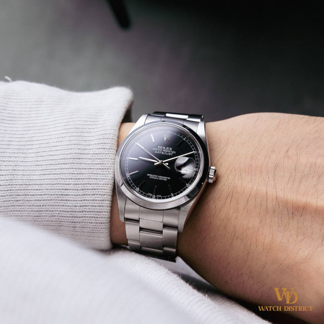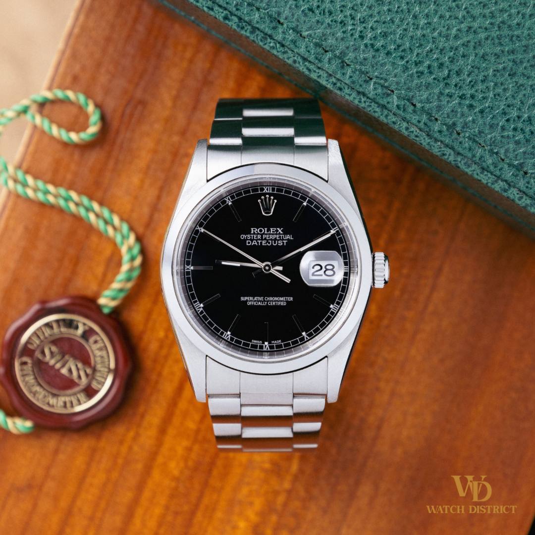 Introducing the Rolex Datejust Ref. 16200, a timeless classic that embodies elegance and versatility. Launched in the late 1980s, this model distinguished itself with its smooth bezel, offering a slightly more casual aesthetic compared to the iconic fluted bezel variations. Its 36mm oyster case & oyster bracelet is not only comfortable but practical for daily usage.