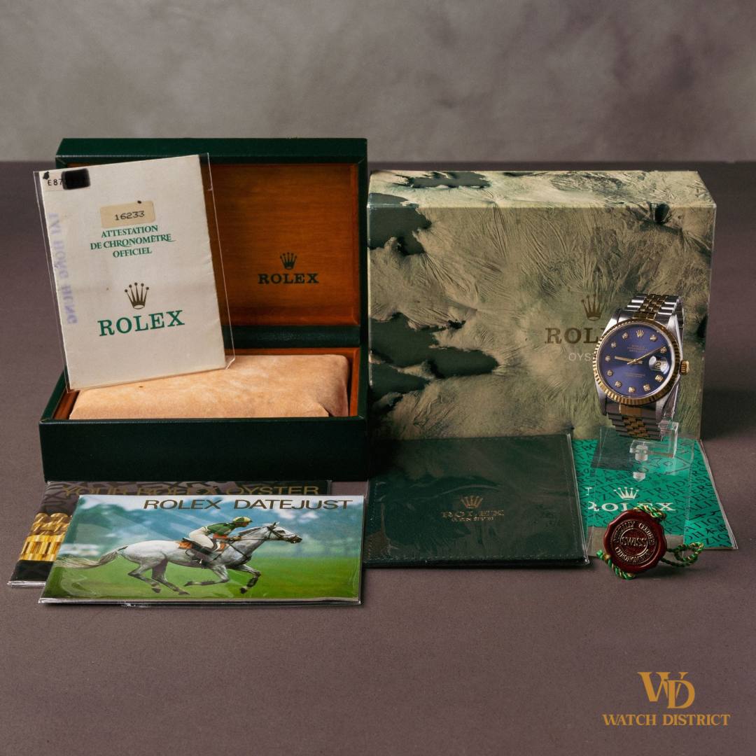 The classic Rolex two-tone Datejust 16233 combines elegance with a touch of luxury, making it a perfect addition to any collection or a statement piece for everyday wear.