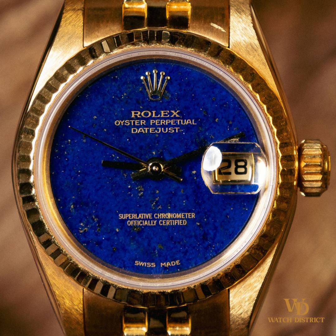 This “Lapis Lazuli” stone dial Ladies Datejust 69178 is an exquisite example of Rolex's rare and exotic stone dials produced in the 1980s.