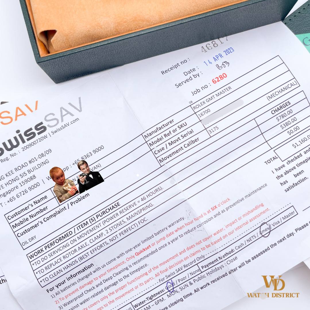 Remarks: Full Set with Outer Box, Green Box, Booklets, Warranty Papers, Red Tag and Swiss SAV Service Receipt