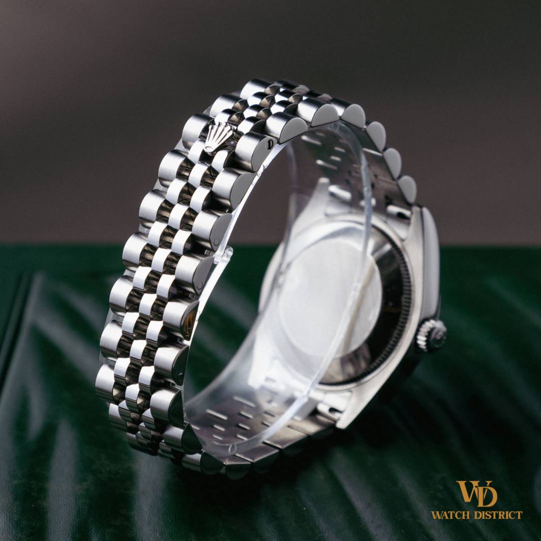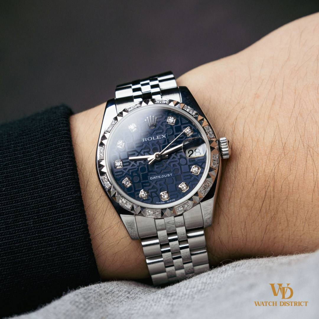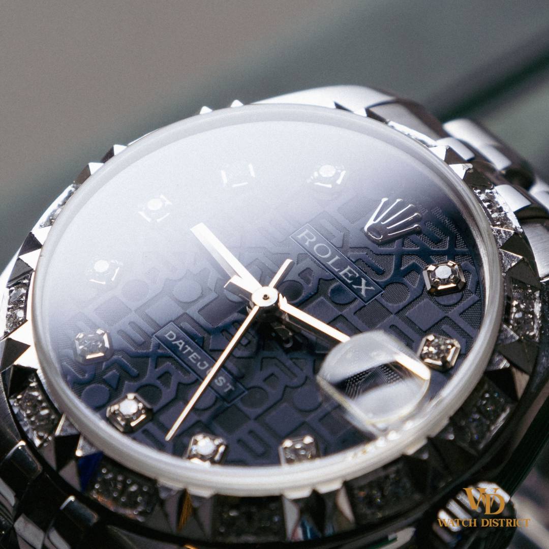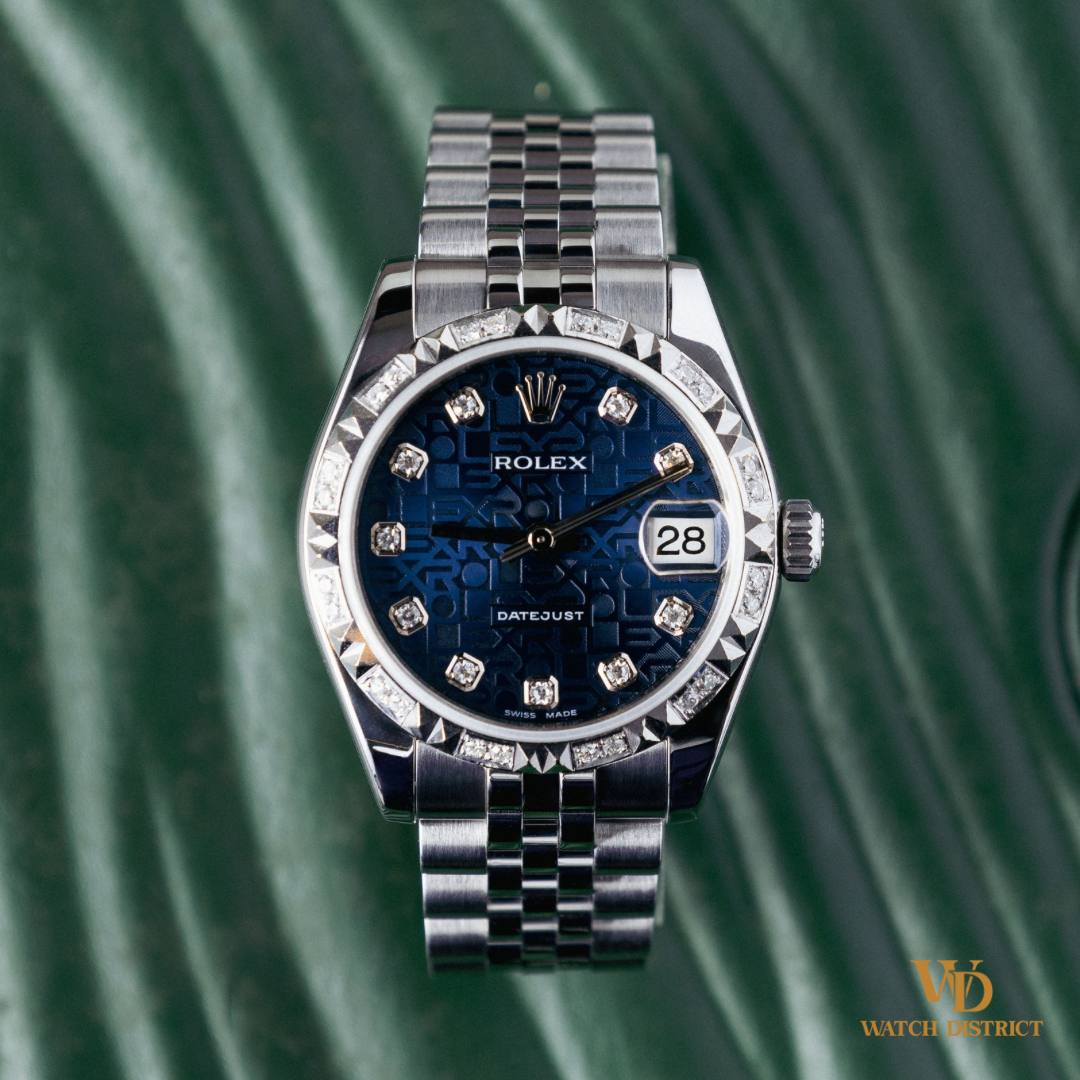 The 178274 model, part of the Datejust family, is known for its perfect balance of size and sophistication. At 31mm, it offers a comfortable fit while maintaining a bold presence. This model features the reliable automatic Cal. 2235 movement, ensuring accuracy and longevity, making it as practical as it is beautiful. This example features a striking navy 10-point diamond Jubilee dial, where each hour marker is meticulously set with Rolex cut diamonds, adding a touch of sparkle to its classic aesthetic. The anniversary Jubilee dial not only enhances visibility but also serves as a beautiful backdrop to the watch’s overall elegance. The custom diamond bezel elevates the watch further, transforming it into a dazzling statement piece that stands out on any wrist. The Datejust has long been celebrated for its versatility, seamlessly transitioning from day to night and complementing any outfit. Whether you’re attending a formal event or enjoying a casual outing, the Datejust remains a symbol of style and prestige. This watch is in excellent condition, having been meticulously cared for & movement fully serviced by our Restoration Centre. Complete with its original box, warranty certificate & accessories, this makes it a perfect addition to any watch collection!