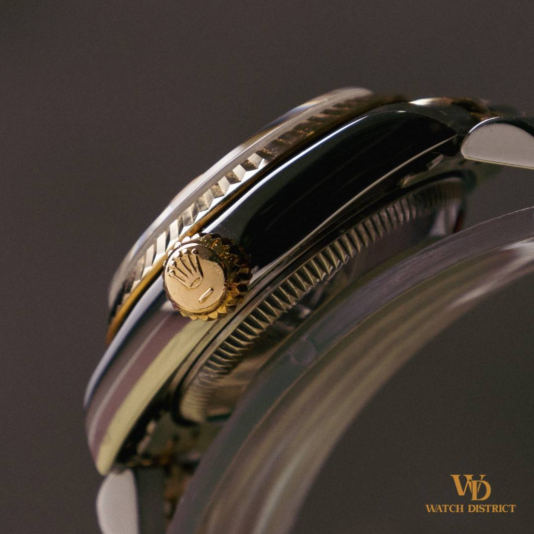 The discontinued 69173 is celebrated for its 26mm case size, crafted from 18k yellow gold and stainless steel, ensuring durability and elegance. Its fluted gold bezel perfectly complements the intricate dial design, making it an ideal choice for both everyday wear and special occasions.