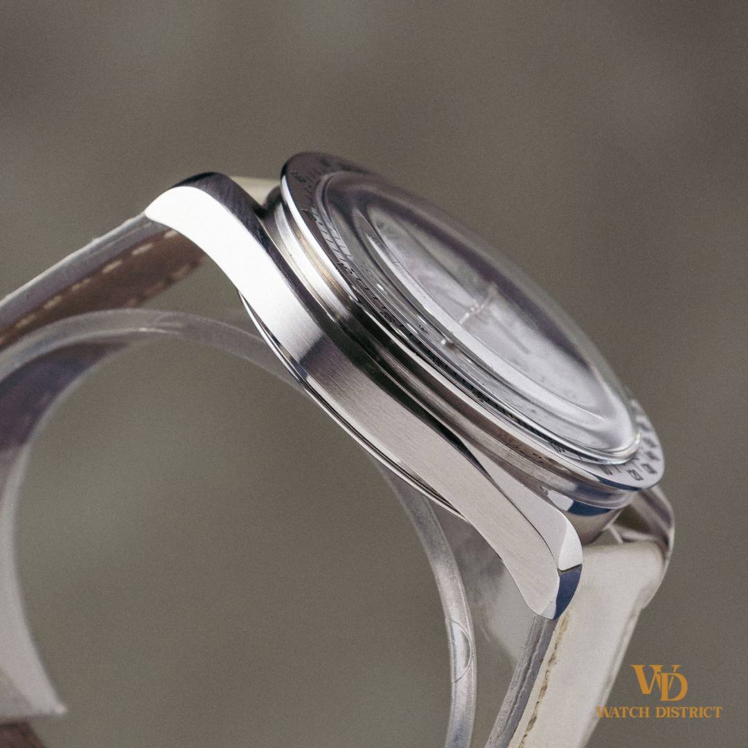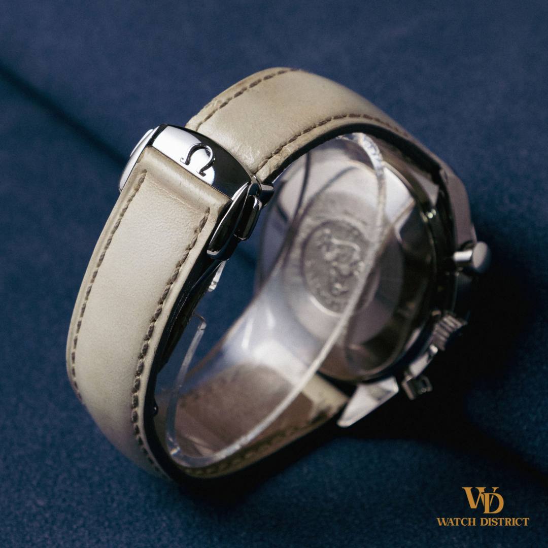 Its full Arabic numeral layout enhances the sense of clarity and charm, while the crisp white Omega leather strap complements the ethereal glow of the dial perfectly. The stainless steel case measures 39mm — a timeless and comfortable size — and houses the proven Omega Caliber 3320, an automatic chronograph movement with 40hrs power reserve. The engraved hippocampus caseback reminds you this is still a Speedmaster at heart — built for precision, durability, and lasting value.