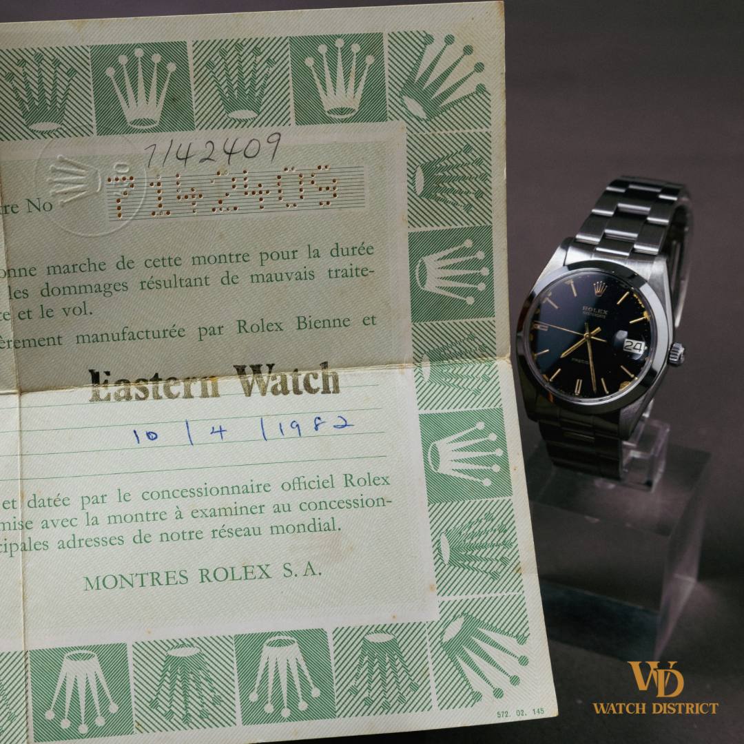 What truly sets this particular piece apart is its uniquely aged original dial, where the hour markers have developed a charming patina over the years. This natural aging adds character and authenticity, making it a standout addition to any collection. Complete with its original box & Singapore’s warranty certificate dated 10 April 1982, don’t miss your chance to own a piece of horological history: the Oysterdate Precision 6694—an enduring symbol of Rolex’s enduring precision and style!