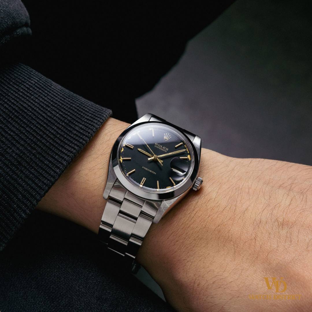This model is often confused with the Oyster Perpetual and Oyster Perpetual Date 1500 due to its similar appearance. However, the Oysterdate sets itself apart by omitting the “Perpetual” label, highlighting its hardy manual-winding Cal. 1215/1225 mechanism with up to 58 hours power reserve in theory.