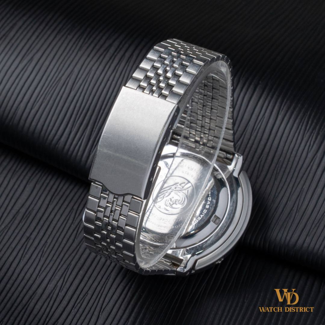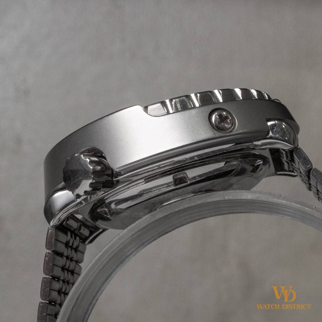 The Seiko Marinemaster Professional “Tuna” SBBN007 is a true icon in the world of professional diving watches, renowned for its distinctive shrouded case and legendary durability. Designed for extreme underwater use, this 300m-rated quartz diver combines Seiko’s technical mastery with a bold, purposeful aesthetic. The stainless steel outer shroud offers superior protection while the high-contrast black dial with large luminous markers ensures exceptional legibility in all conditions. Robust, reliable, and instantly recognizable, the SBBN007 remains one of the most sought-after “Tuna” models for serious divers!