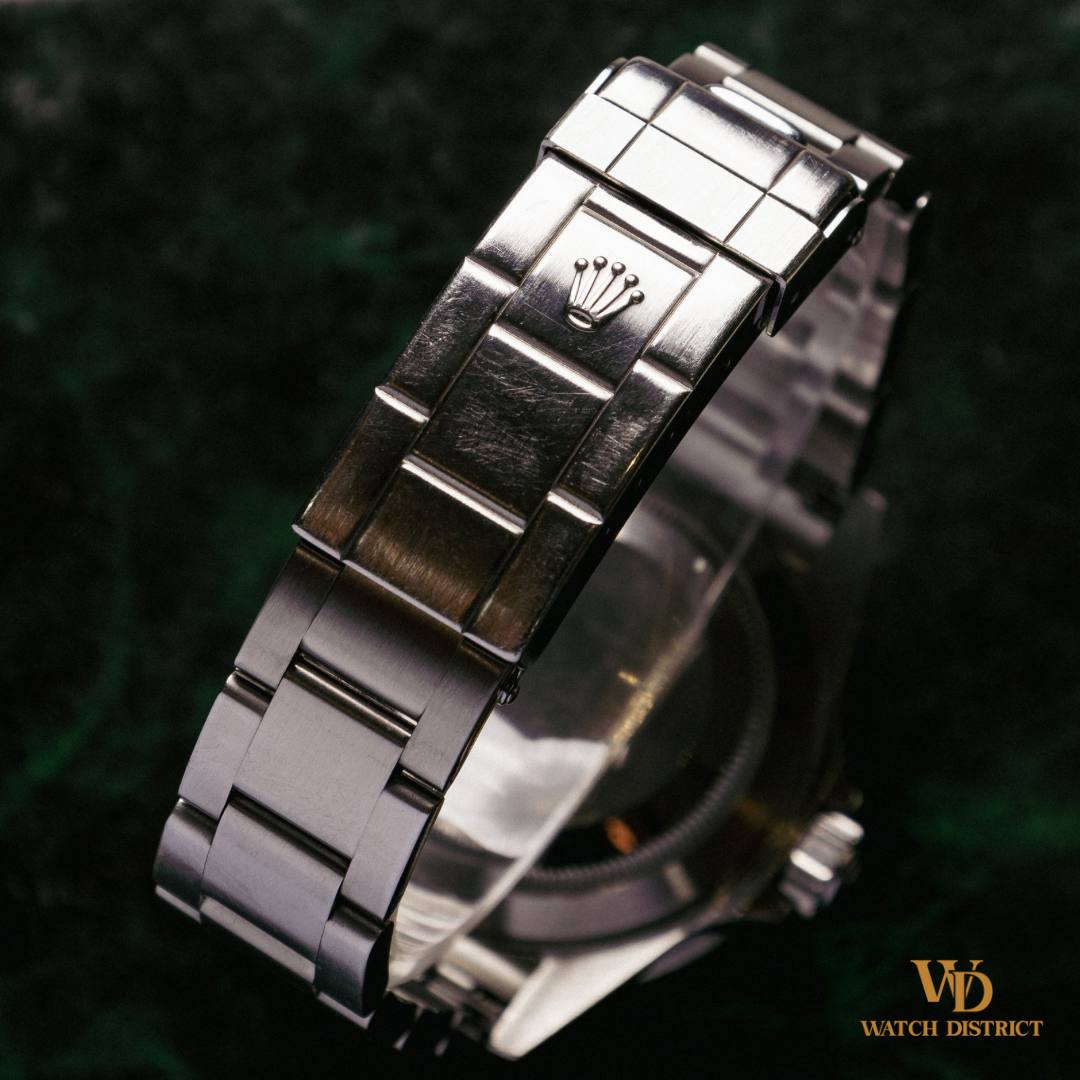 The standout feature of this example is its flawless vibrant green bezel insert & engraved rehaut on its chapter ring. Additionally, the ‘maxi’ dial, with its larger hour markers compared to previous Submariners is a notable characteristic of the ‘Kermit’ Submariner.